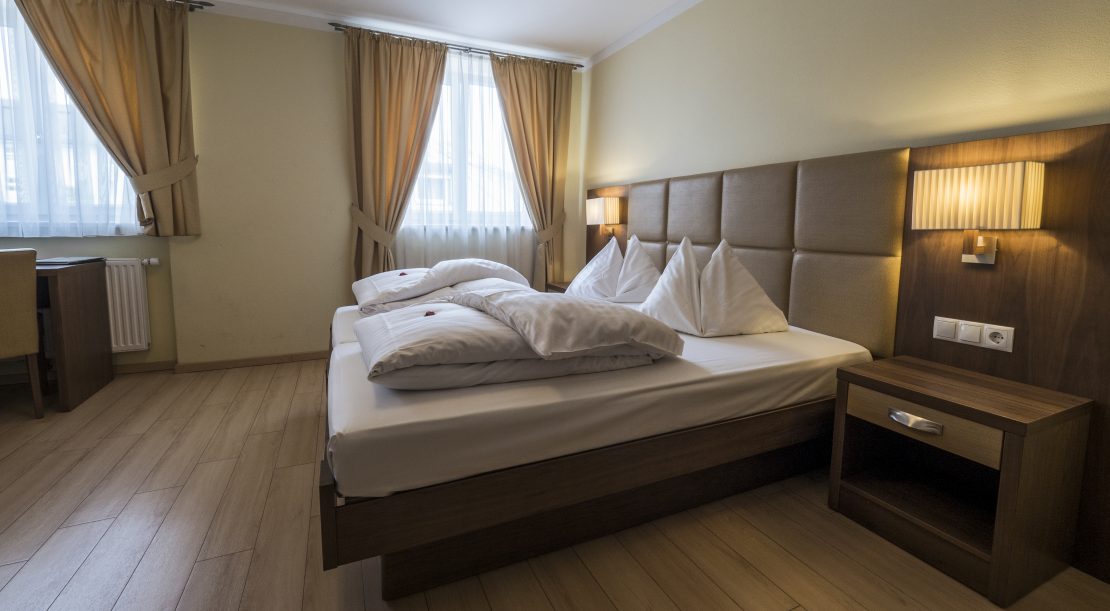 Komfortabler Schreibtisch, Minibar, Kofferablage, kostenloses WLAN, Telefon, Flat Screen Stilvolles Bad mit Dusche und WC sowie Föhn.